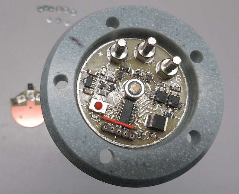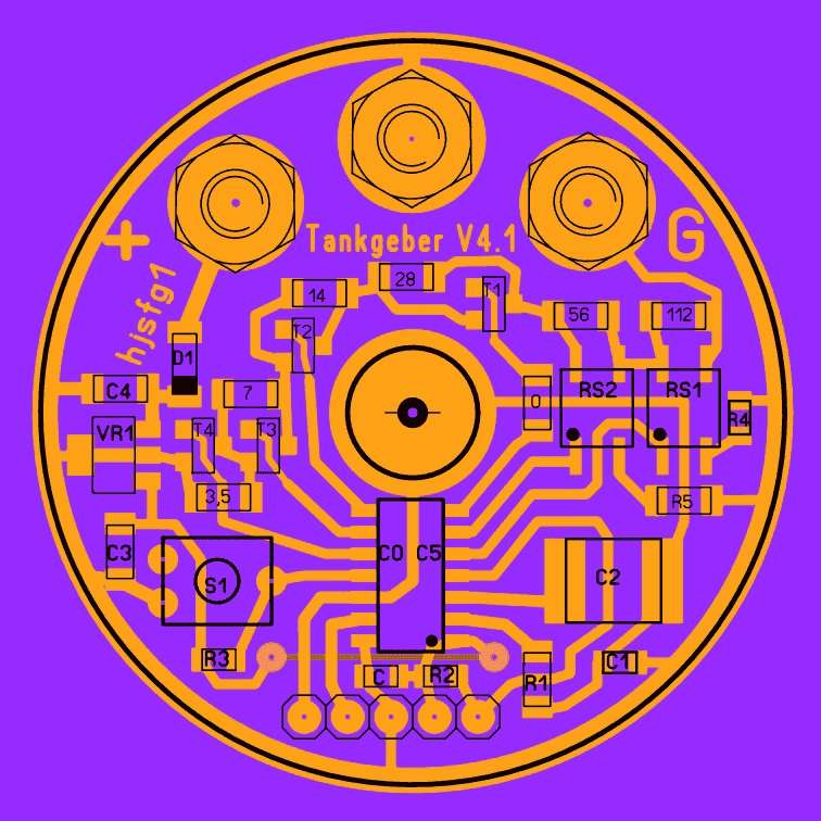 Wegen der möglichen Unterschiede bei der Sensorgeometrie muss ein Abgleich erfolgen. Das geschieht mit dem Drucktaster S1 für die Füllstände leer und voll. Natürlich hatte ich versucht, mit einem Achtbeiner und der Ansteuerung des Instruments über PWM hinzukommen. Allerdings ist im Instrument eine Brückenschaltung verbaut, um den Zeigerausschlag unabhängig von der Bordspannung zu machen. Das hat zur Folge, dass es keinen linearen Zusammenhang zwischen dem Tastverhältnis der PWM und dem Zeigerausschlag gibt. Damit wären mindestens drei Eichpunkte innerhalb der Kennlinie erforderlich. Das ist nicht praktikabel. |