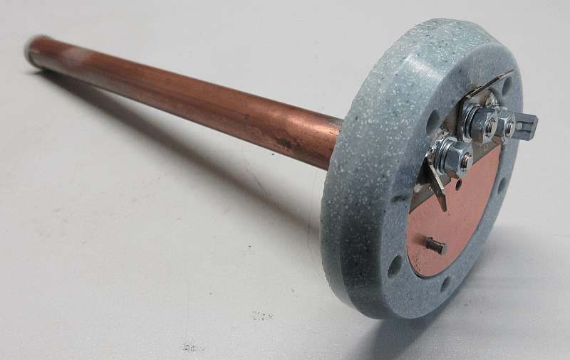 | Der mechanische Teil besteht aus einer koaxialen Anordnung, einer Stange in einem Rohr. Dann braucht das Rohr jeweils unten und oben ein Loch, damit sich der Flüssigkeitsstand ausgleichen kann. |
